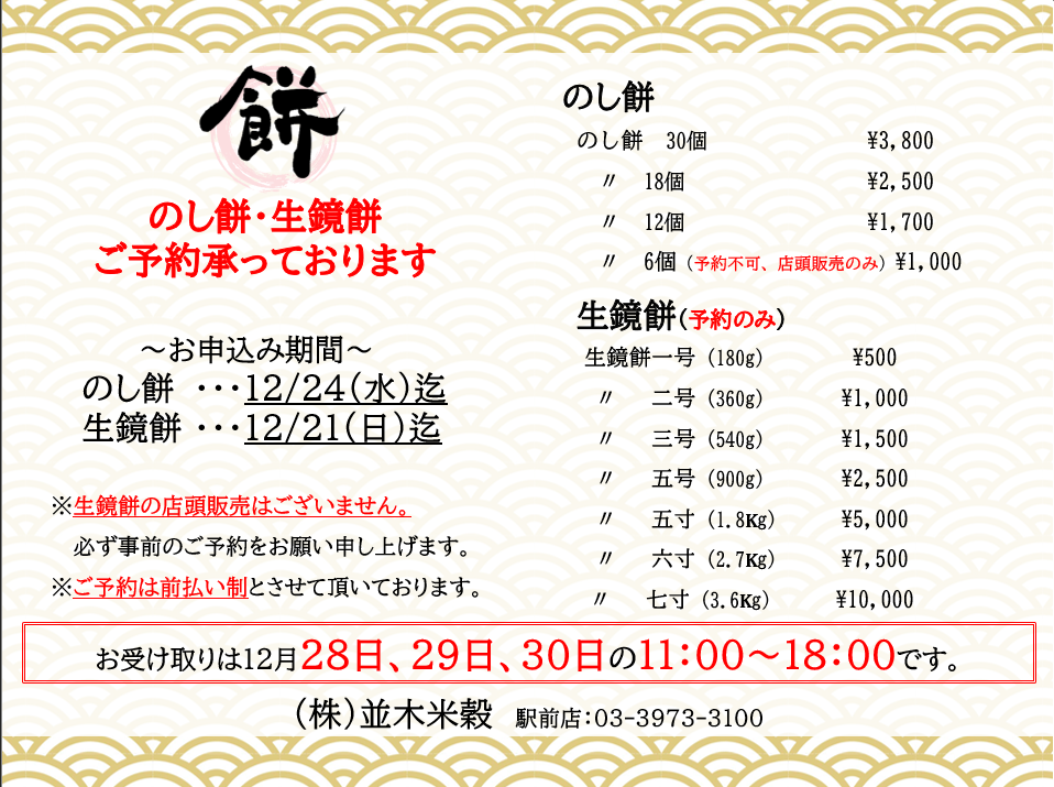 【2025年末】お正月餅のご予約・店頭販売のお知らせ